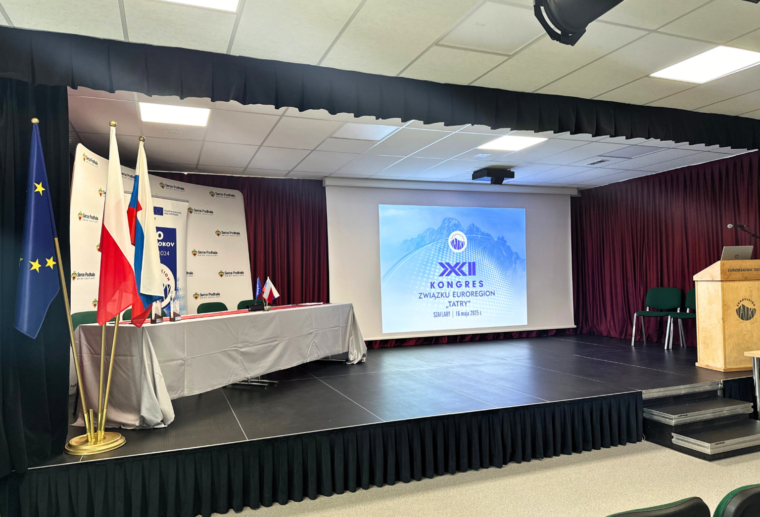 Dnia 16 maja 2025 roku mieliśmy zaszczyt wziąć udział w XXXII Kongresie Związku Euroregion „Tatry”, który odbył się w Hali Widowiskowo-Sportowej w Szaflarach. Wydarzenie zgromadziło delegatów reprezentujących członków Związku, przedstawicieli samorządów, organizacji regionalnych oraz gości z Polski i Słowacji